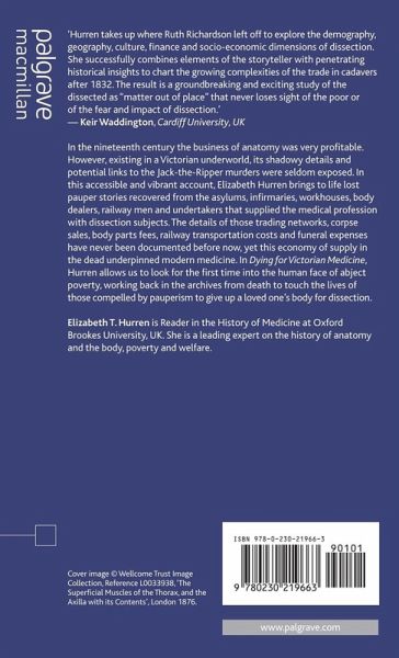 "The first book to provide a detailed analysis of the body-trafficking networks of the dead poor that underpinned the expansion of medical education from Victorian times. With an even-handed approach to the business of anatomy, Hurren uses remarkable case histories which still echo a vibrant body-business on the internet today in a biomedical age." - goodreads.com