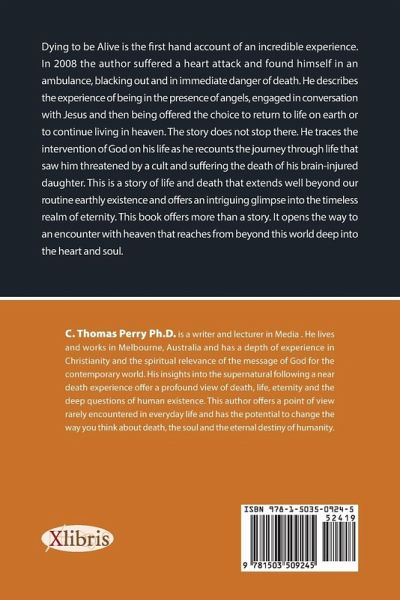 Dying to be Alive is the first hand account of an incredible experience. In 2008 the author suffered a heart attack and found himself in an ambulance, blacking out and in immediate danger of death. He describes the experience of being in the presence of angels, engaged in conversation with Jesus and then being offered the choice to return to life on earth or to continue living in heaven. The story does not stop there. He traces the intervention of God on his life as he recounts the journey through life that saw him threatened by a cult and suffering the death of his brain-injured daughter. This is a story of life and death that extends well beyond our routine earthly existence and offers an intriguing glimpse into the timeless realm of eternity. This book offers more than a story. It opens the way to an encounter with heaven that reaches from beyond this world deep into the heart and soul.