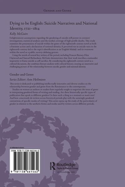 This study examines the presentation of suicide within the genre of the eighteenth-century novel. Referencing several key writers of the period, McGuire demonstrates that their work inscribes a nationalist imperative to frame suicide as self-sacrifice.