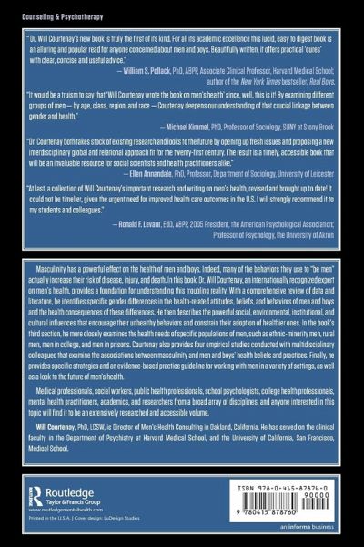 "At last, a collection of Will Courtenay's important research and writing on men's health, revised and brought up to date! It could not be more timely, given the urgent need for improved health care outcomes in the US. I will strongly recommend it to my students and colleagues." - Ronald F. Levant, EdD, ABPP, 2005 President, the American Psychological Association; Professor of Psychology, the University of Akron