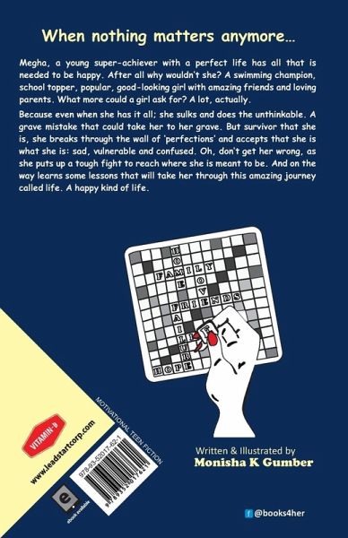 When nothing matters anymore... Megha, a young super-achiever with a perfect life has all that is needed to be happy. After all why wouldn't she? A swimming champion, school topper, popular, good-looking girl with amazing friends and loving parents. What more could a girl ask for? A lot, actually. Because even when she has it all; she sulks and does the unthinkable. A grave mistake that could take her to her grave. But survivor that she is, she breaks through the wall of 'perfections' and accepts that she is what she is: sad, vulnerable and confused. Oh, don't get her wrong, as she puts up a tough fight to reach where she is meant to be. And on the way learns some lessons that will take her through this amazing journey called life. A happy kind of life.