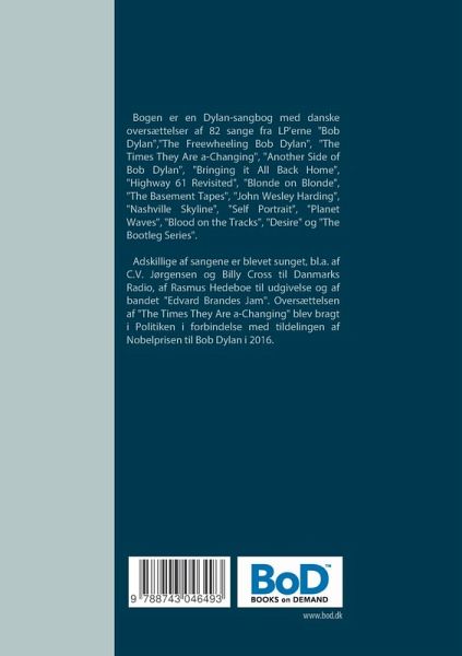 Bogen er en Dylan-sangbog med danske oversættelser af 82 sange fra LP'erne "Bob Dylan","The Freewheeling Bob Dylan", "The Times They Are a-Changing", "Another Side of Bob Dylan", "Bringing it All Back Home", "Highway 61 Revisited", "Blonde on Blonde", "The Basement Tapes", "John Wesley Harding", "Nashville Skyline", "Self Portrait", "Planet Waves", "Blood on the Tracks", "Desire" og "The Bootleg Series". Adskillige af sangene er blevet sunget, bl.a. af C.V. Jørgensen og Billy Cross til Danmarks Radio, af Rasmus Hedeboe til udgivelse og af bandet "Edvard Brandes Jam". Oversættelsen af "The Times They Are a-Changing" blev bragt i Politiken i forbindelse med tildelingen af Nobelprisen til Bob Dylan i 2016.