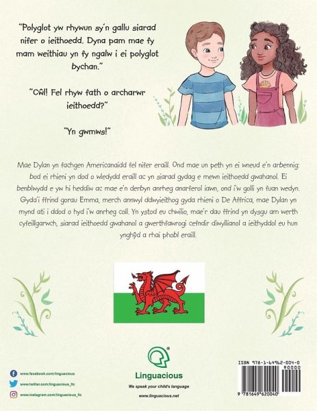"A sweet and colorful picture book with a positive message about our multicultural, multilingual world that will appeal to all language-loving families." -- Adam Beck, author of "Maximize Your Child's Bilingual Ability" Little Polyglot Adventures Series (Vol. 1): Dylan's Birthday Present / Anrheg Penblwydd Dylan¿ - Welsh Edition This is the Welsh edition of this book. It is also available in several other languages, including in bilingual versions. While reading this book, children will learn new words in different languages and feel like little polyglots themselves! Summary in English: Dylan is an American boy like many others. One thing makes him special, though: his parents come from other countries and speak to him in different languages. It's his birthday today and he receives a very unusual present, only to lose it shortly after. Together with his best friend Emma, a sweet bilingual girl born to South African parents, Dylan sets out to find his lost birthday present. During their search, the two friends learn about the value of friendship, of speaking different languages, and of appreciating one's own as well as others' cultural and linguistic background. If you are looking for a children's book in Welsh that will help your child see the value in speaking other languages, in being multicultural, and that will hopefully get them excited about learning languages, this book is a great choice. Summary in Welsh: Mae Dylan yn fachgen Americanaidd fel nifer eraill. Ond mae un peth yn ei wneud e'n arbennig: bod ei rhieni yn dod o wledydd eraill ac yn siarad gydag e mewn ieithoedd gwahanol. Ei benblwydd e yw hi heddiw ac mae e'n derbyn anrheg anarferol iawn, ond i'w golli yn fuan wedyn. Gyda'i ffrind gorau Emma, merch annwyl ddwyieithog gyda rhieni o De Affrica, mae Dylan yn mynd ati i ddod o hyd i'w anrheg coll. Yn ystod eu chwilio, mae'r dau ffrind yn dysgu am werth cyfeillgarwch, siarad ieithoedd gwahanol a gwerthfawrogi cefndir diwyllianol a ieithyddol eu hun ynghyd a rhai phobl eraill.