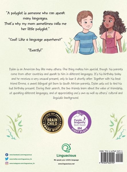 "A sweet and colorful picture book with a positive message about our multicultural, multilingual world that will appeal to all language-loving families." -- Adam Beck, author of "Maximize Your Child's Bilingual Ability" "This book should be on bookshelves in every multilingual home, to help empower kids and develop their 'superpower' of speaking in different languages." -- Shelley Admont, award-winning author, KidKiddos Books "Elementary school children everywhere will enjoy re-reading this story over and over again." -- Nikki PrSa (American polyglot) ¿ Awards ¿:1st Place: Best Illustrations (Purple Dragonfly Award) 1st Place: Cultural Diversity (Purple Dragonfly Award) Golden Award (Mom's Choice Award) Honorable Mention: Picture Books 5 & Younger (Purple Dragonfly Award) Brain Child Book Award (Tillywig Award) Little Polyglot Adventures Series (Vol. 1): Dylan's Birthday Present / Ka Dylan Makana La Hanau - Bilingual Hawaiian ('Olelo Hawai'i) and English Children's Book This is the bilingual Hawaiian and English edition of this children's book. It is also available in several other languages, in both monolingual and bilingual versions. Summary in English: Dylan is an American boy like many others. One thing makes him special, though: his parents come from other countries and speak to him in different languages. It's his birthday today and he receives a very unusual present, only to lose it shortly after. Together with his best friend Emma, a sweet bilingual girl born to South African parents, Dylan sets out to find his lost birthday present. During their search, the two friends learn about the value of friendship, of speaking different languages, and of appreciating one's own as well as others' cultural and linguistic background. If you are looking for a bilingual English - Hawaiian children's book that will help your child see the value in speaking other languages, in being multicultural, and that will hopefully get them excited about learning languages, this book is a great choice. Summary in Hawaiian: He keiki kane ¿o Dylan no ¿Amelika e like aku no me ka nui. Ho¿okahi no na¿e ona mea e kuikawa ai: no na ¿aina like ¿ole kona mau makua a wala¿au no me ia ma na ¿olelo like ¿ole. ¿O kona la hanau keia a he makana kuikawa loa kana, e nalowale auane¿i. Me ke kokua pu ¿ana mai o kona hoa pili ¿o Emma, he kaikamahine lau ¿olelo ¿olu¿olu na ka ¿elua mau makua no ¿Apelika Hema, huaka¿i akula ¿o Dylan ma ka ¿imi ¿ana a loa¿a kana makana la hanau nalowale. Ma ia huaka¿i, a¿o na hoa pili ¿elua i ke ko¿iko¿i o ka pilina hoa pili, ka ¿olelo i na ¿olelo like ¿ole, a me ka mahalo pu i ka ¿ike mo¿omeheu a me ka ¿olelo o kela me keia kanaka.