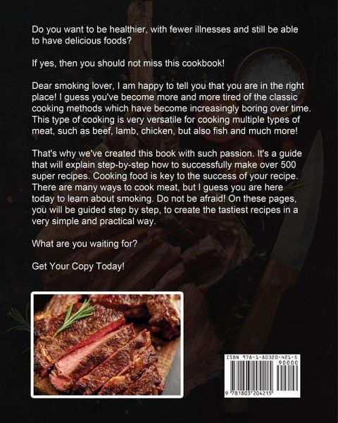 Do you want to be healthier, with fewer illnesses and still be able to have delicious foods? If yes, then you should not miss this cookbook! Dear smoking lover, I am happy to tell you that you are in the right place! I guess you've become more and more tired of the classic cooking methods which have become increasingly boring over time. This type of cooking is very versatile for cooking multiple types of meat, such as beef, lamb, chicken, but also fish and much more! That's why we've created this book with such passion. It's a guide that will explain step-by-step how to successfully make over 500 super recipes. Cooking food is key to the success of your recipe. There are many ways to cook meat, but I guess you are here today to learn about smoking. Do not be afraid! On these pages, you will be guided step by step, to create the tastiest recipes in a very simple and practical way. What are you waiting for? Get Your Copy Today!