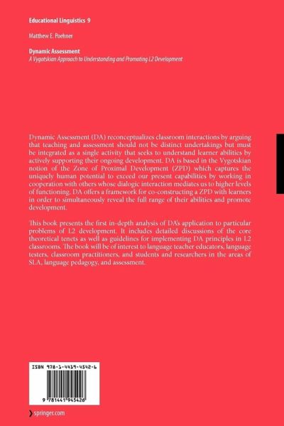 This book presents the first in-depth analysis of DA's application to particular problems of L2 development. It includes detailed discussions of the core theoretical tenets as well as guidelines for implementing DA principles in L2 classrooms. The book will be of interest to language teacher educators, language testers, classroom practitioners, and students and researchers in the areas of SLA, language pedagogy, and assessment.