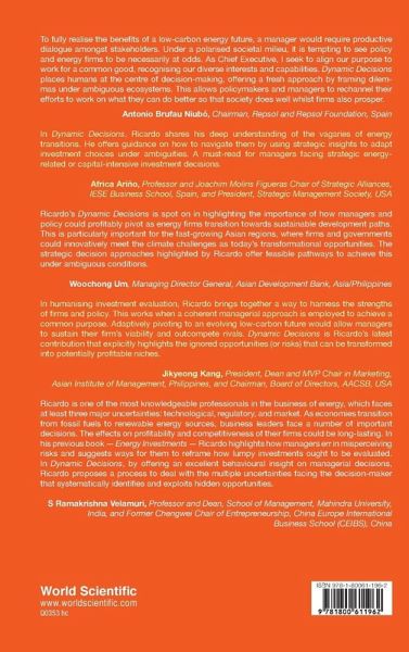 Dynamic Decisions highlights how some managers and policymakers sleepwalk into decision paralysis. Strategically, they partly recognise their world is changing radically as energy systems transition. In deciding what to invest in, they default to rewarding the predictable and proven, often misdiagnosing the ignored risks of innately ambiguous markets. To remedy this, the author frames ambiguity as a source of opportunity. As extant advantages obsolesce, new entrants could disrupt to gain dominance. Some managers could repurpose, reframe, and reconfigure their resources and processes to create tomorrow's profitable niches today. To profit from these emerging business landscapes, managers can PIVOT and BOUnCE to win by transitioning into a dynamic mindset. Endowed with a creative mind to innovate, humans could reshape their firms and their societies. Armed with these capabilities, albeit partial, managers could choose to adapt responsive strategic actions that are tangible, actionable, and achievable, with policy sustaining societal benefits by expanding people's access to opportunities. Dynamic Decisions is written for managers and policymakers that seek to benefit their firms and communities in how they conduct their business and themselves. Connecting theory to practice with actual business cases, this book is organised into four clusters that act as building blocks to structure the reader's decision-making process. Through experimentation, learning, and adaptation, the reader of Dynamic Decisions will redirect their strategic actions that are necessary to nurture tomorrow's profitable niches today.