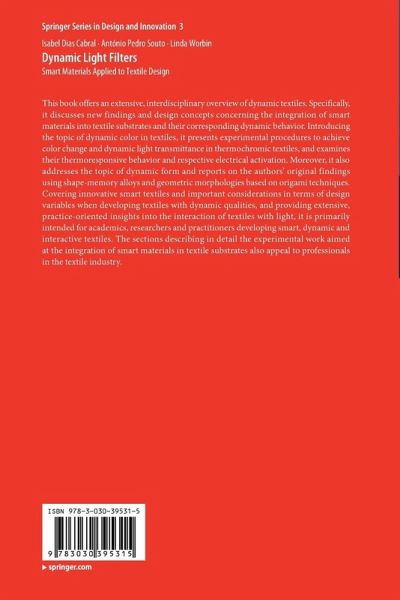 This book offers an extensive, interdisciplinary overview of dynamic textiles. Specifically, it discusses new findings and design concepts concerning the integration of smart materials into textile substrates and their corresponding dynamic behavior. Introducing the topic of dynamic color in textiles, it presents experimental procedures to achieve color change and dynamic light transmittance in thermochromic textiles, and examines their thermoresponsive behavior and respective electrical activation. Moreover, it also addresses the topic of dynamic form and reports on the authors' original findings using shape-memory alloys and geometric morphologies based on origami techniques. Covering innovative smart textiles and important considerations in terms of design variables when developing textiles with dynamic qualities, and providing extensive, practice-oriented insights into the interaction of textiles with light, it is primarily intended for academics, researchers and practitioners developing smart, dynamic and interactive textiles. The sections describing in detail the experimental work aimed at the integration of smart materials in textile substrates also appeal to professionals in the textile industry.