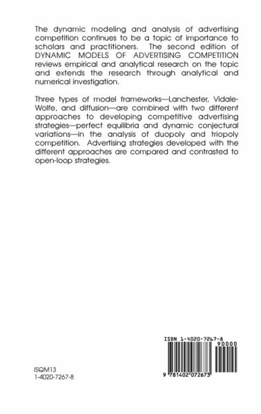 I am gratified that there is sufficient interest in the subject matter so as to support the offering of a second edition of this monograph. The of differential games dynamic interpretation and game theoretic foundation form a powerful and vital methodology for helping us study and understand marketing competition. This second edition offers a blend of what proved to be successful with the first edition and new material. The first two chapters, reviewing empirical and modeling research, have been updated to include contributions in the last decade that have advanced the area. I have not changed the essential content in the duopoly analyses in chapters 3, 4, and 5. A notable addition to the present edition are the new chapters, 6, 7, and 8, which offer analysis of three triopoly models. In the final chapter, I offer my summary view of the area and hope for continued contributions. I want to express my appreciation for the support of Josh Eliashberg, editor of the International Series in Quantitative Marketing, as well as Zachary Rolnik, Director, and David Cella, Publishing Editor, of Kluwer. Their encouragement has provided crucial motivation in this endeavor.