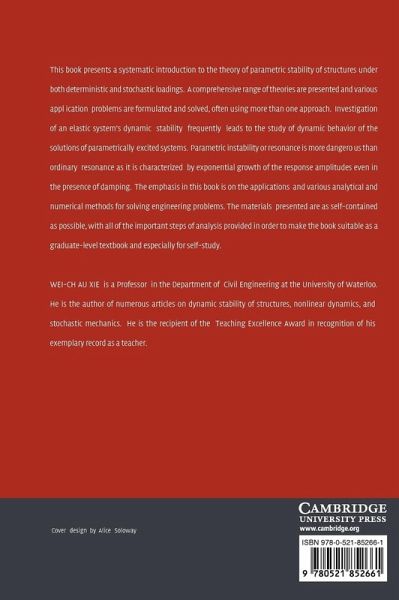 This 2006 book presents a systematic introduction to the theory of parametric stability of structures under both deterministic and stochastic loadings. A comprehensive range of theories are presented and various application problems are formulated and solved, often using more than one approach. Investigation of an elastic system's dynamic stability frequently leads to the study of dynamic behaviour of the solutions of parametrically excited systems. Parametric instability or resonance is more dangerous than ordinary resonance as it is characterised by exponential growth of the response amplitudes even in the presence of damping. The emphasis in this book is on the applications and various analytical and numerical methods for solving engineering problems. The materials presented are as self-contained as possible, with all of the important steps of analysis provided in order to make the book suitable as a graduate-level textbook and especially for self-study.