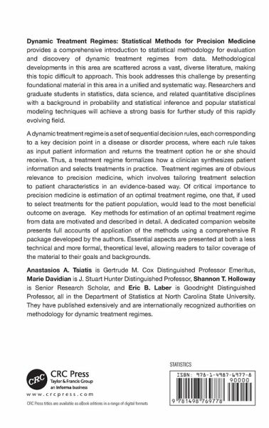 Precision medicine seeks to use data to construct principled, i.e., evidence-based, treatment strategies that dictate where, when, and to whom treatment should be applied. This book provides an accessible yet comprehensive introduction to statistical methodology for dynamic treatment regimes.