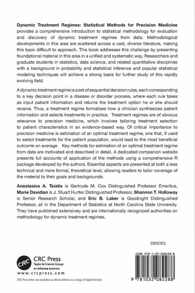 Dynamic Treatment Regimes: Statistical Methods for Precision Medicine provides a comprehensive introduction to statistical methodology for the evaluation and discovery of dynamic treatment regimes from data. Researchers and graduate students in statistics, data science, and related quantitative disciplines with a background in probability and statistical inference and popular statistical modeling techniques will be prepared for further study of this rapidly evolving field.