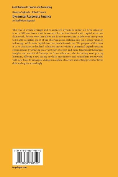 The way in which leverage and its expected dynamics impact on firm valuation is very different from what is assumed by the traditional static capital structure framework. Recent work that allows the firm to restructure its debt over time proves to be able to explain much of the observed cross-sectional and time-series variation in leverage, while static capital structure predictions do not. The purpose of this book is to re-characterize the firm's valuation process within a dynamical capital structure environment, by drawing on a vast body of recent and more traditional theoretical insights and empirical findings on firm evaluation, also including asset pricing literature, offering a new setting in which practitioners and researchers are provided with new tools to anticipate changes in capital structure and setting prices for firm's debt and equity accordingly.