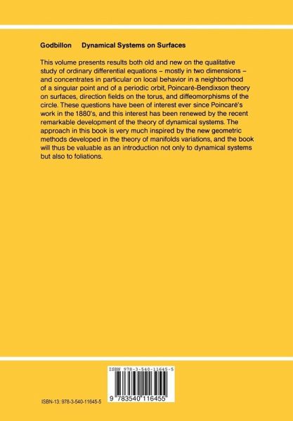These notes are an elaboration of the first part of a course on foliations which I have given at Strasbourg in 1976 and at Tunis in 1977. They are concerned mostly with dynamical sys tems in dimensions one and two, in particular with a view to their applications to foliated manifolds. An important chapter, however, is missing, which would have been dealing with structural stability. The publication of the French edition was re alized by-the efforts of the secretariat and the printing office of the Department of Mathematics of Strasbourg. I am deeply grateful to all those who contributed, in particular to Mme. Lambert for typing the manuscript, and to Messrs. Bodo and Christ for its reproduction. Strasbourg, January 1979. Table of Contents I. VECTOR FIELDS ON MANIFOLDS 1. Integration of vector fields. 1 2. General theory of orbits. 13 3. Irlvariant and minimaI sets. 18 4. Limit sets. 21 5. Direction fields. 27 A. Vector fields and isotopies. 34 II. THE LOCAL BEHAVIOUR OF VECTOR FIELDS 39 1. Stability and conjugation. 39 2. Linear differential equations. 44 3. Linear differential equations with constant coefficients. 47 4. Linear differential equations with periodic coefficients. 50 5. Variation field of a vector field. 52 6. Behaviour near a singular point. 57 7. Behaviour near a periodic orbit. 59 A. Conjugation of contractions in R. 67 III. PLANAR VECTOR FIELDS 75 1. Limit sets in the plane. 75 2. Periodic orbits. 82 3. Singular points. 90 4. The Poincare index.