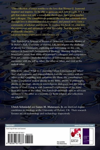 This Festschrift in honour of Werner G. Jeanrond, currently Master of St Benet's Hall, University of Oxford, UK, investigates the challenge of alterity for Christianity, exploring and elaborating on this core concern in Jeanrond's hermeneutical theology. Blurring disciplinary boundaries, more than thirty of Jeanrond's colleagues and companions from ten countries track the dynamics of difference driven by the encounter with the self as other, the other as other, and God as the radical other. Who is my other? What do I encounter when I encounter my other? And what responses and responsibilities does the encounter with my other evoke? Grappling with questions like these, the contributions to this compilation analyse alterity in the Bible, alterity in philosophy, alterity in theology, alterity in interreligious dialogues, and the radical alterity of God. Tying in with Jeanrond's explorations of the many faces and facets of the other, this Festschrift ultimately aims to advocate openness to the other as a necessity for both religion and reflections on religion.