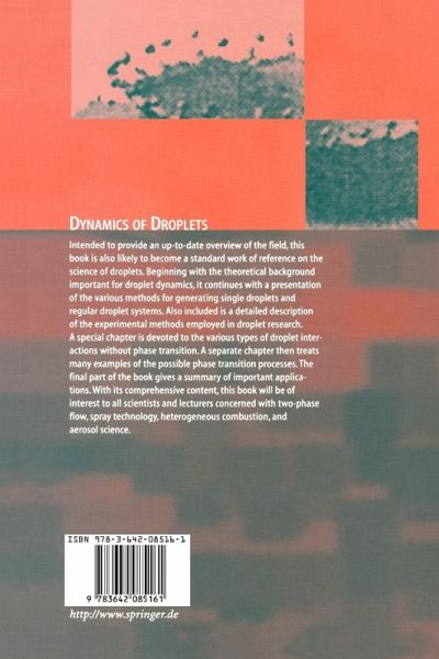 Intended to provide an up-to-date overview of the field, this book is also likely to become a standard work of reference on the science of droplets. Beginning with the theoretical background important for droplet dynamics, it continues with a presentation of the various methods for generating single droplets and regular droplet systems. Also included is a detailed description of the experimental methods employed in droplet research. A special chapter is devoted to the various types of droplet interactions without phase transition. A separate chapter then treats many examples of the possible phase transition processes. The final part of the book gives a summary of important applications. With its comprehensive content, this book will be of interest to all scientists and lecturers concerned with two-phase flow, spray technology, heterogeneous combustion, and aerosol science.