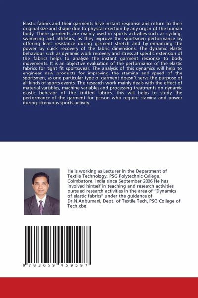Elastic fabrics and their garments have instant response and return to their original size and shape due to physical exertion by any organ of the human body. These garments are mainly used in sports activities such as cycling, swimming and athletics, as they improve the sportsmen performance by offering least resistance during garment stretch and by enhancing the power by quick recovery of the fabric dimensions. The dynamic elastic behaviour such as dynamic work recovery and stress at specific extension of the fabrics helps to analyze the instant garment response to body movements. It is an objective evaluation of the performance of the elastic fabrics for tight fit sportswear. The analysis of this dynamics will help to engineer new products for improving the stamina and speed of the sportsmen, as one particular type of garment doesn't serve the purpose of all kinds of sports events. The research work mainly deals with the effect of material variables, machine variables and processing treatments on dynamic elastic behavior of the knitted fabrics. this will helps to study the performance of the garment for person who require stamina and power during strenuous sports activity.