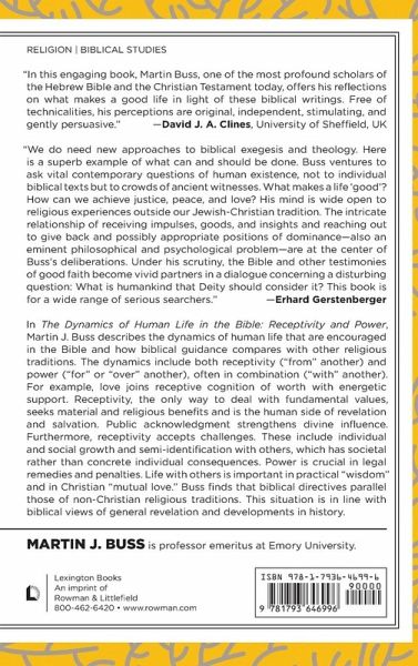 In The Dynamics of Human Life in the Bible: Receptivity and Power, Martin J. Buss describes the dynamics of human life that are encouraged in the Bible and how biblical guidance parallels those of non-Christian religious traditions.