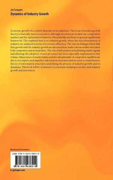 Economic growth of a country depends on its industries. The focus of modern growth theory is basically macroeconomics, although neoclassical models use competitive markets and the optimization behavior of households and firms in general equilibrium framework. The emphasis here is on industry growth, where the microfoundations of industry are analyzed in terms of economic efficiency. The various linkages which link firm growth with the industry growth are discerned here under various market structures both competitive and monopolistic. The role of information in facilitating market signals and allowing the adoption of new processes has been especially emphasized in this volume. Many issues of market failure and the suboptimality of competitive equilibria are due to incomplete and imperfect information structures and we need a comprehensive theory of information structures underlying the process of industry growth and its dynamics. This book will be of interest to economists studying economic and industry growth and innovation.