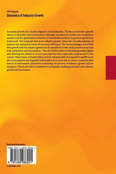 Economic growth of a country depends on its industries. The focus of modern growth theory is basically macroeconomics, although neoclassical models use competitive markets and the optimization behavior of households and firms in general equilibrium framework. The emphasis here is on industry growth, where the microfoundations of industry are analyzed in terms of economic efficiency. The various linkages which link firm growth with the industry growth are discerned here under various market structures both competitive and monopolistic. The role of information in facilitating market signals and allowing the adoption of new processes has been especially emphasized in this volume. Many issues of market failure and the suboptimality of competitive equilibria are due to incomplete and imperfect information structures and we need a comprehensive theory of information structures underlying the process of industry growth and its dynamics. This book will be of interest to economists studying economic and industry growth and innovation.