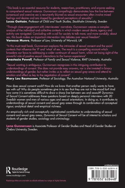 This book addresses questions of sexual consent using deeply personal interviews with twenty Swedish women and men of various ages and sexual orientations. In doing so, it contributes to understandings of sexual consent and sexual grey areas through its combination of conceptual rigour, analytical detail and empirical richness.