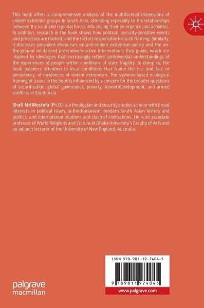 This book offers a comprehensive analysis of the multifaceted dimensions of violent extremist groups in South Asia, attending especially to the relationships between the local and regional forces influencing their emergence and activities. In addition, research in the book shows how political, security-sensitive events and processes are framed, and the factors responsible for such framing. Similarly, it discusses prevalent discourses on anti-violent extremism policy and the on-the-ground militarized preventive/reactive interventions they guide, which are inspired by ideologies that increasingly reflect controversial understandings of the experiences of people within conditions of state fragility. In doing so, the book balances attention to local conditions that frame the rise and fall, or persistency, of incidences of violent extremism. The systems-based ecological framing of issues in the book is influenced by a concern for the broader questions of securitization, global governance, poverty, (under)development, and armed conflicts in South Asia.