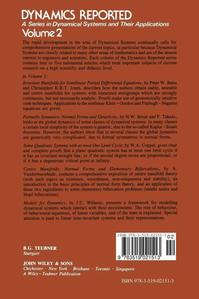 Dynamics Reported reports on recent developments in dynamical systems theory. Dynamical systems theory, of course, originated from ordinary differential equations. Today, dynamical systems theory covers a much larger area, including dynamical processes described by functional and integral equations, by partial and stochastic differential equations, etc. Dynamical systems theory has evolved remarkably rapidly in the recent years. A wealth of new phenomena, new ideas and new techniques proved to be of considerable interest to scientists in rather different fields. It is not surprising that thousands of publications on the theory itself and on its various applications have appeared and still will appear. Dynamics Reported presents carefully written articles on major subjects in dynamical systems and their applications, addressed not only to specialists but also to a broader range of readers. Topics are advanced while detailed exposition of ideas, restriction to typical results, rather than to the most general ones and, last but not least, lucid proofs help to gain an utmost degree of clarity. It is hoped that Dynamics Reported will stimulate exchange of ideas among those working in dynamical systems and moreover will be useful for those entering the field.