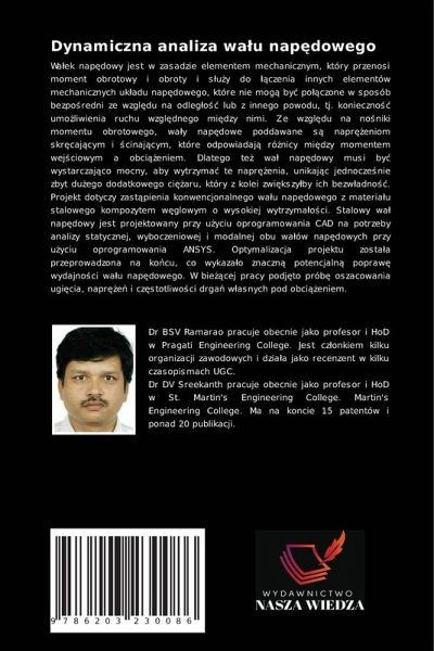 Wäek nap¿dowy jest w zasadzie elementem mechanicznym, który przenosi moment obrotowy i obroty i s¿u¿y do ¿¿czenia innych elementów mechanicznych uk¿adu nap¿dowego, które nie mog¿ by¿ po¿¿czone w sposób bezpo¿redni ze wzgl¿du na odleg¿o¿¿ lub z innego powodu, tj. konieczno¿¿ umo¿liwienia ruchu wzgl¿dnego mi¿dzy nimi. Ze wzgl¿du na no¿niki momentu obrotowego, wäy nap¿dowe poddawane s¿ napr¿¿eniom skr¿caj¿cym i ¿cinaj¿cym, które odpowiadaj¿ ró¿nicy mi¿dzy momentem wej¿ciowym a obci¿¿eniem. Dlatego te¿ wä nap¿dowy musi by¿ wystarczaj¿co mocny, aby wytrzymä te napr¿¿enia, unikaj¿c jednocze¿nie zbyt du¿ego dodatkowego ci¿¿aru, który z kolei zwi¿kszy¿by ich bezw¿adno¿¿. Projekt dotyczy zast¿pienia konwencjonalnego wäu nap¿dowego z materiäu stalowego kompozytem w¿glowym o wysokiej wytrzymäo¿ci. Stalowy wä nap¿dowy jest projektowany przy u¿yciu oprogramowania CAD na potrzeby analizy statycznej, wyboczeniowej i modalnej obu wäów nap¿dowych przy u¿yciu oprogramowania ANSYS. Optymalizacja projektu zostäa przeprowadzona na ko¿cu, co wykazäo znaczn¿ potencjaln¿ popraw¿ wydajno¿ci wäu nap¿dowego. W bie¿¿cej pracy podj¿to prób¿ oszacowania ugi¿cia, napr¿¿e¿ i cz¿stotliwo¿ci drgä w¿asnych pod obci¿¿eniem.