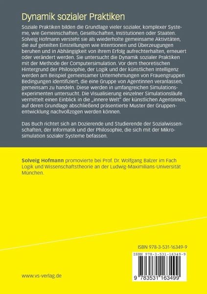 Dieses Buch über Simulation von sozialen Praktiken eröffnet einen großen - reich von interessanten und wichtigen Anwendungen. Soziale Praktiken bilden die Grundlage vieler sozialer, komplexer Systeme, wie Gemeinschaften, Gese- schaften, Genossenschaften, Organisationen, Institutionen, Staaten und viele andere mehr. Dieses Buch analysiert und simuliert eine generische Fallgruppe, in der es hunderte ähnlicher Fälle gibt. Die Untersuchung von sozialen Systemen benutzt hier gleich zwei für - künftige Forschungen wichtige Simulationskomponenten. Erstens erschließt dieses Werk die psychologische Welt der Akteure für Computersimulationen. Diese Welt lässt sich mit den Begriffen der Überzeugung, der Absicht und des Wunsches aufbauen. Frau Hofmann verwendet zwei der drei zentralen psycho- gischen Begriffe, nämlich Überzeugung und Absicht, während die Welt der Wünsche in dieser Arbeit nur impliziert benutzt wird. Diese Komponenten werden sicherlich bei vielen folgenden Simulationen eine Rolle spielen. In den hier beschriebenen Simulationen werden eine große Menge von Überzeugungen und eine kleinere Menge von Absichten der Akteure generiert. In einem ersten Schritt wird nur ein grobes Gerüst von Rationalitä- postulaten verwendet. Die vielen "Logiken", mit denen die Überzeugungssys- me in eine rationale Ordnung gebracht werden, können in einer Simulation nur angewendet werden, wenn die Überzeugungssysteme rational mit Inhalt gefüllt sind. Die normale, menschliche Welt ist aber nur begrenzt rational und die nicht rationalen Anwandlungen der Menschen sind bis jetzt nur in ersten Ansätzen in formalen Abteilungen der Wissenschaften zu finden. Deshalb wurde als zweite Komponente der Simulation eine Komponente benutzt, die bis jetzt stiefmütterlich behandeltwird, nämlich die Handlungen.