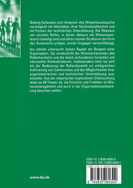 Isa Jahnke untersucht diesen Aspekt am Beispiel einer Organisation. Sie verdeutlicht die Wirkmechanismen des Rollenhandelns und die damit verbundenen formellen und informellen Rollenstrukturen. Insbesondere setzt sie sich mit der Bedeutung der Rollendynamik zur erfolgreichen Kultivierung von Communities und den Möglichkeiten ihrer organisatorischen und technischen Unterstützung auseinander. Aus der empirischen explorativen Untersuchung leitet sie 49 Thesen ab, die Forscher und Praktiker im Wissensmanagement und auch in der Organisationsentwicklung beachten sollten.