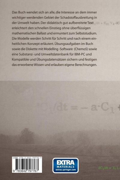 Das Buch wendet sich an alle, die Interesse an dem immer wichtiger werdenden Gebiet der Schadstoffausbreitung in der Umwelt haben. Der didaktisch gut aufbereitete Text erleichtert den schnellen Einstieg ohne überflüssigen mathematischen Ballast und ermuntert zum Selbststudium. Die Modelle werden Schritt für Schritt und nach einem einheitlichen Konzept erläutert. Übungsaufgaben im Buch und die Diskette mit Modelling-Software (CemoS), Übungsdatensätzen sowie eine Substanz- und Umweltdatenbank für IBM-PC und Kompatible sichern und festigen das erworbene Wissen und erlauben eigene Berechnungen.
