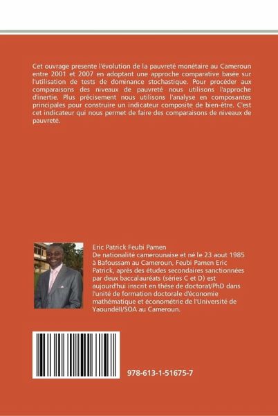 Cet ouvrage presente l'évolution de la pauvreté monétaire au Cameroun entre 2001 et 2007 en adoptant une approche comparative basée sur l'utilisation de tests de dominance stochastique. Pour procéder aux comparaisons des niveaux de pauvreté nous utilisons l'approche d'inertie. Plus précisement nous utilisons l'analyse en composantes principales pour construire un indicateur composite de bien-être. C'est cet indicateur qui nous permet de faire des comparaisons de niveaux de pauvreté.