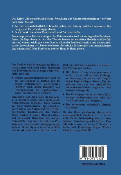 Die Planung von Wertpapierinvestitionen. insbesondere von Aktienanlagen ist Gegen stand vielfaltiger Diskussionsbeitrage sowohl in der theoretischen als auch in der praxis orientierten betriebswirtschaftlichcn Literatur. Es bedarf daher eincr Begriindung. warum diese Literaturfiille durch das vorliegcnde Such noch vermehrt werden soIl. Die Entwicklung der Aktienkurse wurde bislang mit Hilfe zweier gcgensatzlicher Theorien zu erklaren versucht: Die Vertreter der Fundamentalanalyse sehen im Ge winn pro Aktie den entscheidenden EinflulUaktor der Aktienkursentwicklung. wah rend die Anhanger der Technischen oder Chartanalysc allein yom historischen Kurs verlauf auf die: zukiinftige Entwicklung schliegen. In diese:r Arbeit wird empirisch gezeigt. daB beide Ansatze zu einseitig sind und die Realitat - betreffend den Aktienmarkt der Sundesrepublik Deutschland - nicht ange messen beschreiben. Aus dieser Erkenntnis heraus wird in diescm Such ein neucr Weg fiir die Akti- anlageplanung bcschritten. der folgende Stu fen umfaBt: Statistische Analyse: der Zeitreihen reprasentativer deutscher Aktien sowie weiterer okonomischer Zeitreihen. die die Aktienkursentwicklung beeinflussen konnten. Konstruktion eines Kursprognosemodells auf der Basis der Regressionsanalyse. Entwicklung eines computergestiitzten Planungssystems fiir Aktienanlagen mit ent scheidungstheoretisch begriindeter Zielfunktion. Test dieses Systems an der tatsachlichen Borsensituation der letzten fiinf Jahre. Aufgrund seiner Zielsetzung und der angewandten Methoden ist das Buch auf mittel bis langfristige Kapitalanlagen zugeschnitten und stellt keinesfalls eine Anleitung zur kurzfristigen Spekulation dar. Vielmehr sollte bei der Lektiire dcutlich werden. daB eine effektive Aktienanlageplanung nur durch sorgfliltige Sammlung und Verarbeitung vie ler wissenschaftlicher .. Mosaiksteinchen" moglich ist.