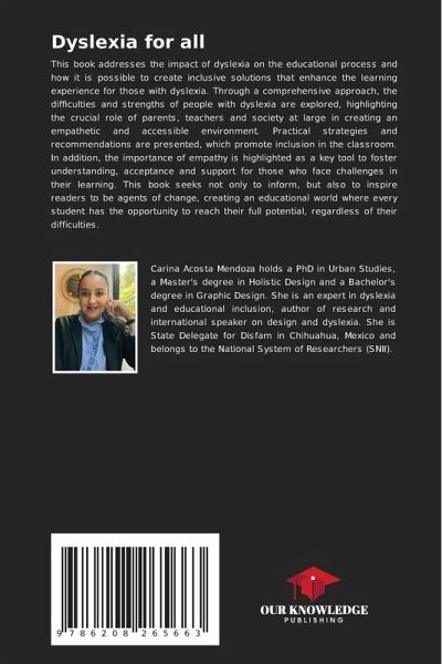 This book addresses the impact of dyslexia on the educational process and how it is possible to create inclusive solutions that enhance the learning experience for those with dyslexia. Through a comprehensive approach, the difficulties and strengths of people with dyslexia are explored, highlighting the crucial role of parents, teachers and society at large in creating an empathetic and accessible environment. Practical strategies and recommendations are presented, which promote inclusion in the classroom. In addition, the importance of empathy is highlighted as a key tool to foster understanding, acceptance and support for those who face challenges in their learning. This book seeks not only to inform, but also to inspire readers to be agents of change, creating an educational world where every student has the opportunity to reach their full potential, regardless of their difficulties.
