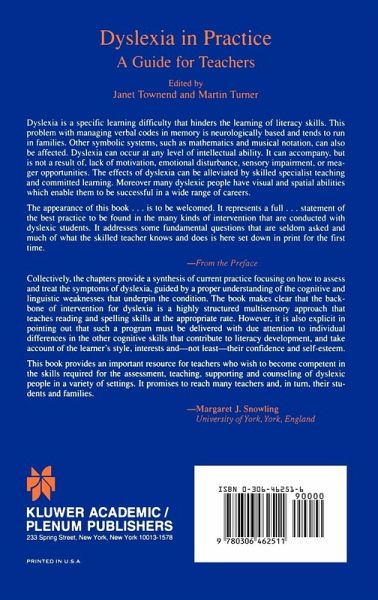 `Collectively, the chapters provide a synthesis of current practice focusing on how to assess and treat the symptoms of dyslexia, guided by a proper understanding of the cognitive and linguistic weaknesses that underpin the condition. The book makes clear that the backbone of intervention for dyslexia is a highly structured multisensory approach that teaches reading and spelling skills at the appropriate rate. However, it is also explicit in pointing out that such a programme must be delivered with due attention to individual differences in the other cognitive skills that contribute to literacy development, and take account of the learner's style, interests and not least their confidence and self-esteem.
