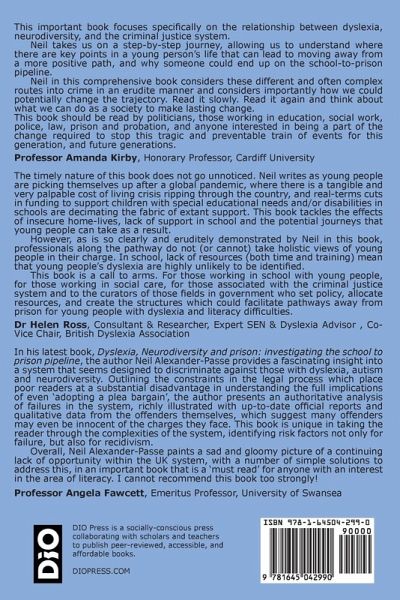 This book is a journey and uncovers many recent research studies that highlight that half the prison population have a reading age below 11 years old, however have been through school and the justice system without their learning difficulties being identified. The book questions a school system that have failed them, along with the likely unfair trials that have taken place, leading many to prison. The use of early plea bargaining to accept a 'guilty plea' mean that many sign away their rights without fully understanding the implications of their choice. This book also highlights that prison breaches equality legislation at an institutional level through many published reports, being highly application form based and does not allow accessibility choices.