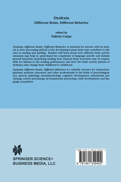 Dyslexia: Different Brain, Different Behavior is a valuable resource for researchers, graduate students, educators and other professionals in the fields of psycholinguistics, speech pathology, neuropsychology, cognitive development, educational psychology, school psychology, developmental psychology, child development and language acquisition.