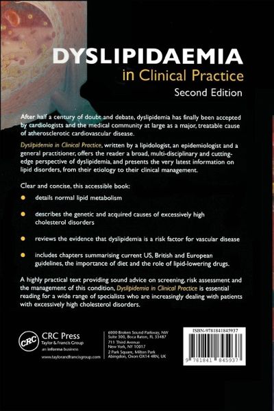 The Second Edition offers the reader the very latest information on lipid disorders from aetiology to the management of this ever increasing problem that is a major cause of atherosclerotic and cardiovascular disease. Written by a general practitioner, an epidemiologist, and a lipidologist, this concise and well-illustrated text will appeal to a wide range of specialists who are dealing increasingly with dyslipidaemia. This book is practical and offers sound advice on screening, risk assessment and the management of dyslipidaemia, and is essential reading.