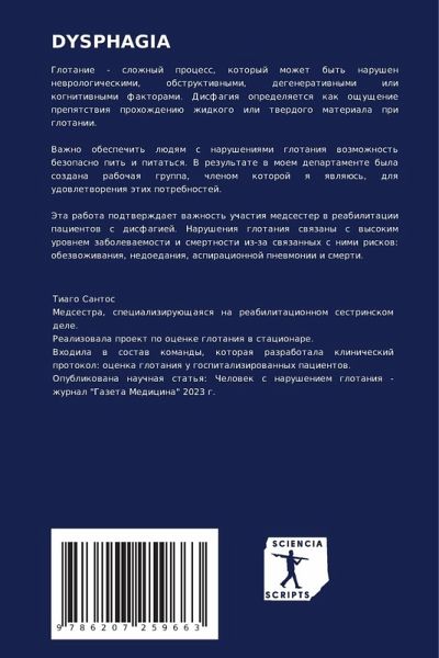 Glotanie - slozhnyj process, kotoryj mozhet byt' narushen newrologicheskimi, obstruktiwnymi, degeneratiwnymi ili kognitiwnymi faktorami. Disfagiq opredelqetsq kak oschuschenie prepqtstwiq prohozhdeniü zhidkogo ili twerdogo materiala pri glotanii.Vazhno obespechit' lüdqm s narusheniqmi glotaniq wozmozhnost' bezopasno pit' i pitat'sq. V rezul'tate w moem departamente byla sozdana rabochaq gruppa, chlenom kotoroj q qwlqüs', dlq udowletworeniq ätih potrebnostej.Jeta rabota podtwerzhdaet wazhnost' uchastiq medsester w reabilitacii pacientow s disfagiej. Narusheniq glotaniq swqzany s wysokim urownem zabolewaemosti i smertnosti iz-za swqzannyh s nimi riskow: obezwozhiwaniq, nedoedaniq, aspiracionnoj pnewmonii i smerti.