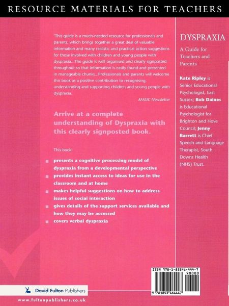 The aim of this text is to promote an understanding of dyspraxia and movement development among professionals who work with children, and also to offer a text which is accessible to parents. It presents a cognitive processing model of dyspraxia from a developmental perspective, and addresses issues of social development in addition to the more easily observable motor planning difficulties which are associated with dyspraxia. The difficulties which may face the dyspraxic child at home and at school are described with strategies for managing their difficulties. Details are provided of the support services available and how they may be accessed.