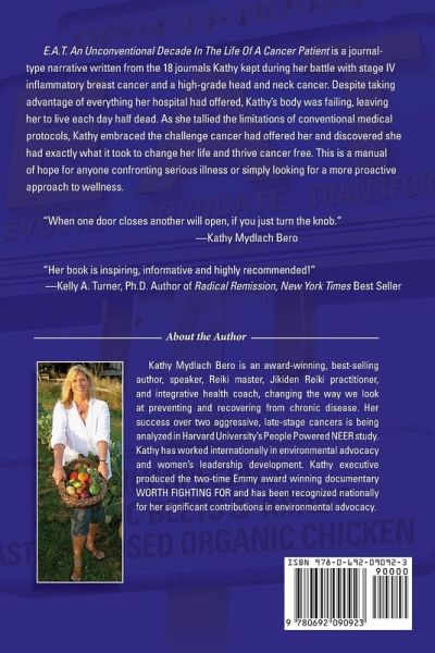 Bero purchased 60 acres to forage and become a subsistence farmer, and seven years later, her idyllic rural lifestyle was turned upside down. In 2005, she was diagnosed with stage IV inflammatory breast cancer and in 2006 a high-grade tumor in her head and neck. With children aged two and seven, three dogs and a barn full of animals, she white knuckled her way through toxic treatments and severe side-effects to become a powerful self-advocate with a dedicated trust in her innate abilities to complete her healing outside of the protocol box. Bero's memoir is a transparent, honest, and relatable account of battling cancer through the prism of healing. Her genuine optimism and passion for life is contagious in this candid and deeply human story that speaks straight to the heart, providing insight into how she created her own integrative healing protocol. ¿Bero's case piqued the interest of Harvard University's NEER study, looking to understand individuals with unexpected success battling cancer. As the ninth participant accepted into the study, she is hoping their work will lead to big changes in conventional medical protocols. Bero's steadfast belief is that true health care reform starts with clean, high-quality food paired with energy healing modalities that deepen our spiritual connection. Her approach was simple, attainable, and obviously sustainable, embracing the idea of that which you give attention to grows. ¿¿¿"Kathy's story is a powerful one about stepping out in faith, embracing fears, and in a few clever Judo moves, turning the fear process on its head and into a force for good." - Larry Mullen, Jr., Founder U2 "Kathy's health journey is simply remarkable. It gives a glimpse into the dynamic healing potential of human beings and offers direction for anyone wanting to navigate the key ingredients of one's powerful self-healing mechanisms. ...an outlier that found a healing path when our science did not think it was possible..." - David Rakel MD, Professor & Chair of the Department of Family Medicine and Community Health and Founder of Center for Integrative Health at the University of Wisconsin. "Her book is inspiring, informative and highly recommended!" - Kelly A. Turner, Ph.D. author of Radical Remission New York Times Best Seller "Candid, detailed, engaging, compelling, memorable, well written, and offering something very precious and timely for readers..." - Midwest Book Review "Bero kept journals, documenting with exquisite detail...readers who are cancer patients themselves or are interested in a patient's experience will find that this book has real value." - Kirkus Reviews "...discover that she owns the three qualities defining the survival of the fittest: a strong support system, an ability to roll with the punches, and a mindset that never takes 'no' for an answer..." - Indie Reader Review 13th Annual National Indie Excellence Award Winner for Best Motivational book and Award Finalist in Alternative Medicine books; 2019 International Book Awards Finalist for Best New Non-Fiction; 2019 Book Excellence Award Winner for Best Memoir