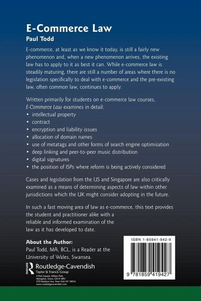 This book includes detailed coverage of intellectual property, contract, encryption and liability issues, including allocation of domain names, use of metatags and other forms of search engine optimization, digital signatures and the position of ISPs and other intermediaries. There are case studies on electronic conveyancing and e-taxation. Though the book is written from a UK perspective, comparative material is included from other jurisdictions, including America and Singapore in particular.