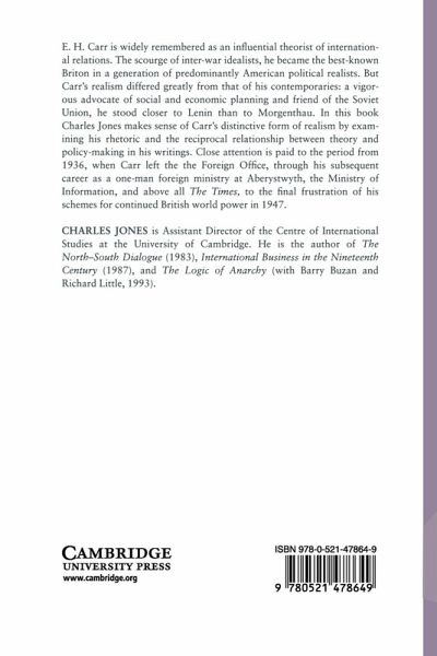 E. H. Carr is widely remembered as an influential theorist of international relations. The scourge of inter-war idealists, he became the best-known Briton in a generation of predominantly American political realists. But Carr's realism differed greatly from that of his contemporaries: a vigorous advocate of social and economic planning and friend of the Soviet Union, he stood closer to Lenin than to Morgenthau. In this book Charles Jones makes sense of Carr's distinctive form of realism by examining his rhetoric and the reciprocal relationship between theory and policy-making in his writings. Close attention is paid to the period from 1936, when Carr left the Foreign Office, through his subsequent career as a one-man foreign ministry at Aberystwyth, the Ministry of Information, and above all The Times, culminating in the final frustration of his schemes for continued British world power in 1947.