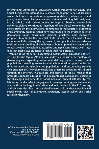 A volume in International Advances in Education:Global Initiatives for Equity and Social Justice. Volume 10, E-learning & Social Media: Education and Citizenship for the Digital 21st Century, addresses the use of technology in: developing and expanding educational delivery systems to reach rural populations, providing access to equitable education opportunities for disadvantaged and marginalized populations, and encouraging student civic engagement. The volume evaluates e-learning programs (distributed through the Internet, via satellite and hosted on social media) that promote equitable education for disadvantaged populations; examines the challenges and benefits of social media on student self-identity, collaboration, and academic engagement; shares promising practices associated with technology in education and e-citizenship in the 21st century, and advances the discussion on blending global citizenship education and social media that raises student awareness, accountability and social justice involvement.