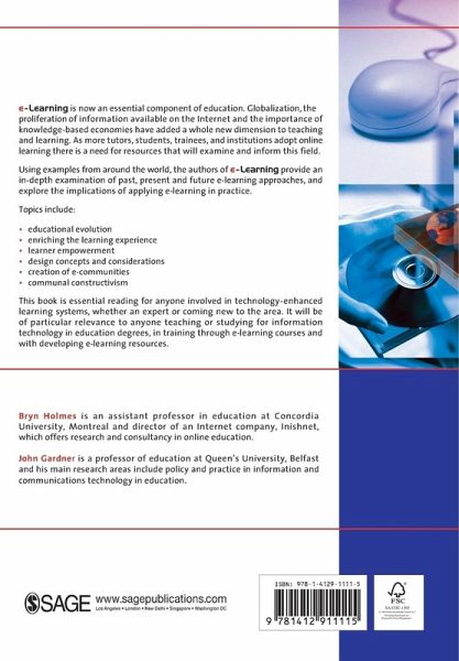 e-Learning is now an essential component of education. Globalization, the proliferation of information available on the Internet and the importance of knowledge-based economies have added a whole new dimension to teaching and learning. As more tutors, students and trainees, and institutions adopt online learning there is a need for resources that will examine and inform this field. Using examples from around the world, the authors of e-Learning: Concepts and Practices provide an in-depth examination of past, present and future e-learning approaches, and explore the implications of applying e-learning in practice. Topics include: - educational evolution - enriching the learning experience - learner empowerment - design concepts and considerations - creation of e-communities - communal constructivism This book is essential reading for anyone involved in technology enhanced learning systems, whether an expert or coming new to the area. It will be of particular relevance to those involved in teaching or studying for information technology in education degrees, in training through e-learning courses and with developing e-learning resources. Bryn Holmes is an assistant professor in Education at Concordia University, Montreal and director of an Internet company, Inishnet, which offers research and consultancy in online education. John Gardner is a professor of education at Queen's University, Belfast and his main research areas include policy and practice in information and communications technology in education.