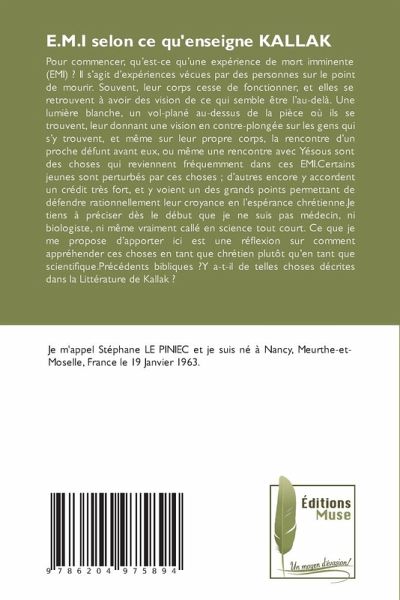 Pour commencer, qu'est-ce qu'une expérience de mort imminente (EMI) ? Il s'agit d'expériences vécues par des personnes sur le point de mourir. Souvent, leur corps cesse de fonctionner, et elles se retrouvent à avoir des vision de ce qui semble être l'au-delà. Une lumière blanche, un vol-plané au-dessus de la pièce où ils se trouvent, leur donnant une vision en contre-plongée sur les gens qui s'y trouvent, et même sur leur propre corps, la rencontre d'un proche défunt avant eux, ou même une rencontre avec Yésous sont des choses qui reviennent fréquemment dans ces EMI.Certains jeunes sont perturbés par ces choses ; d'autres encore y accordent un crédit très fort, et y voient un des grands points permettant de défendre rationnellement leur croyance en l'espérance chrétienne.Je tiens à préciser dès le début que je ne suis pas médecin, ni biologiste, ni même vraiment callé en science tout court. Ce que je me propose d'apporter ici est une réflexion sur comment appréhender ces choses en tant que chrétien plutôt qu'en tant que scientifique.Précédents bibliques ?Y a-t-il de telles choses décrites dans la Littérature de Kallak ?