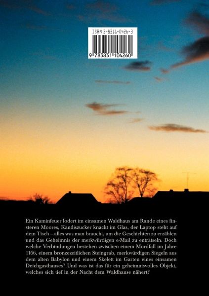 Ein Kaminfeuer lodert im einsamen Waldhaus am Rande eines finsteren Moores, Kandiszucker knackt im Glas, der Laptop steht auf dem Tisch - alles was man braucht, um die Geschichten zu erzählen und das Geheimnis der merkwürdigen e-Mail zu enträtseln. Doch welche Verbindungen bestehen zwischen einem Mordfall im Jahre 1166, einem bronzezeitlichen Steingrab, merkwürdigen Siegeln aus dem alten Babylon und einem Skelett im Garten eines einsamen Deichgasthauses? Und was ist das für ein geheimnisvolles Objekt, welches sich tief in der Nacht dem Waldhause nähert?