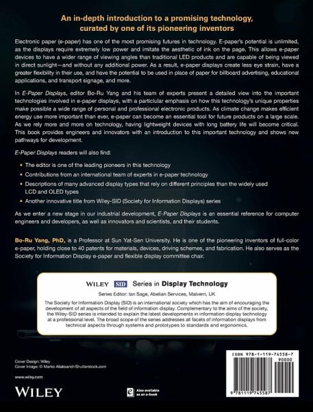 In E-Paper Displays, editor Bo-Ru Yang and his team of experts present a detailed view into the important technologies involved in e-paper displays, with a particlular emphasis on how this technology's unique properties make possible a wide range of personal and professional electronic products. As climate change makes efficient energy use more important than ever, e-paper can become an essential tool for future products on a large scale. As we rely more and more on technology, having lightweight devices with long battery life will become critical. This book provides engineers and innovators with an introduction to this important technology and shows new pathways for development.