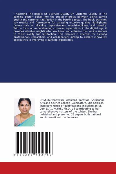 " Assessing The Impact Of E-Service Quality On Customer Loyalty In The Banking Sector" delves into the critical interplay between digital service quality and customer satisfaction in the banking sector. The book examines key metrics and frameworks for assessing e-service quality, highlighting factors such as reliability, responsiveness, user-friendliness, and security. With a focus on understanding customer expectations in the digital age, it provides valuable insights into how banks can enhance their online services to foster loyalty and satisfaction. This resource is essential for banking professionals, researchers, and academicians aiming to explore innovative approaches to improving e-banking experiences.