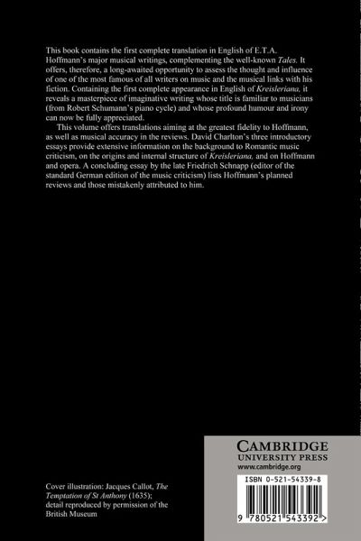 This book contains the first complete translation in English of E. T. A. Hoffmann's major musical writings, complementing the well-known Tales. It offers, therefore, a long-awaited opportunity to assess the thought and influence of one of the most famous of all writers on music and the musical links with his fiction. Containing the first complete appearance in English of Kreisleriana, it reveals a masterpiece of imaginative writing whose title is familiar to musicians (from Robert Schumann's piano cycle) and whose profound humour and irony can now be fully appreciated. This volume offers translations aiming at the greatest fidelity to Hoffmann, as well as musical accuracy in the reviews. David Charlton's three introductory essays provide extensive information on the background to Romantic music criticism; on the origins and internal structure of Kreisleriana; and on Hoffmann and opera. A concluding essay by the late Friedrich Schnapp lists Hoffmann's planned reviews and those mistakenly attributed to him.